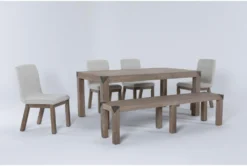 Magnolia Home Webster Walnut 96″ Dining With Bench, Low + High Back Chair Set For 6 By Joanna Gaines
