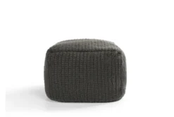 16X16 Green And White Plaid Cube Pouf With Cognac Leather Handle