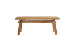 This 47 Inch Mahogany Wood Saw Horse Bench is a narrow yet sturdy addition to any indoor space. Its rustic style and solid wood structure, with angled legs in a trestle-inspired design, create a cozy and organic feel. The light brown finish adds to its natural look.