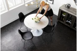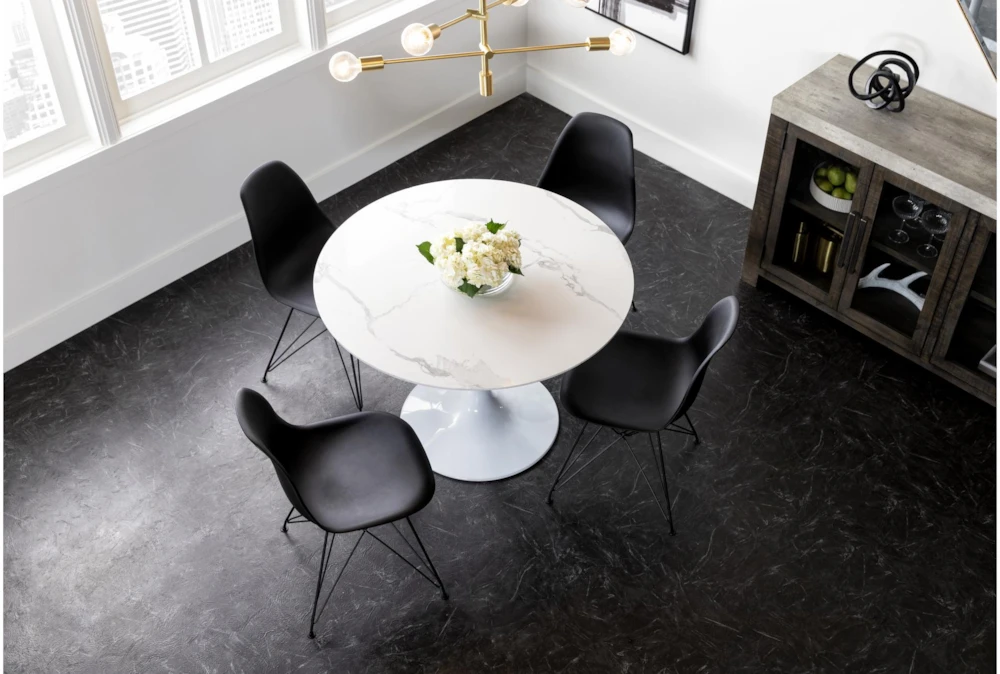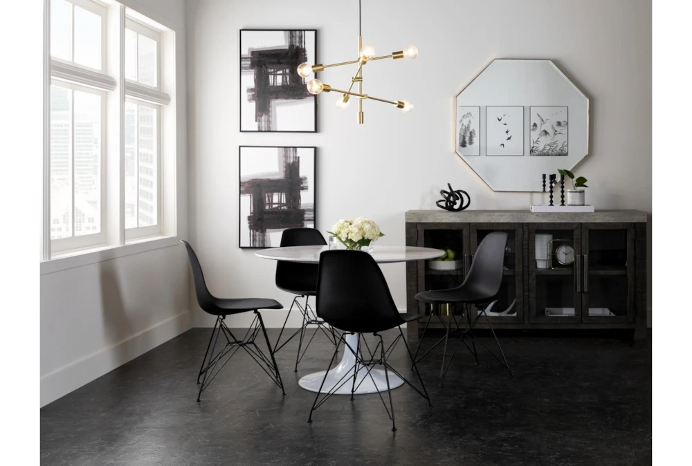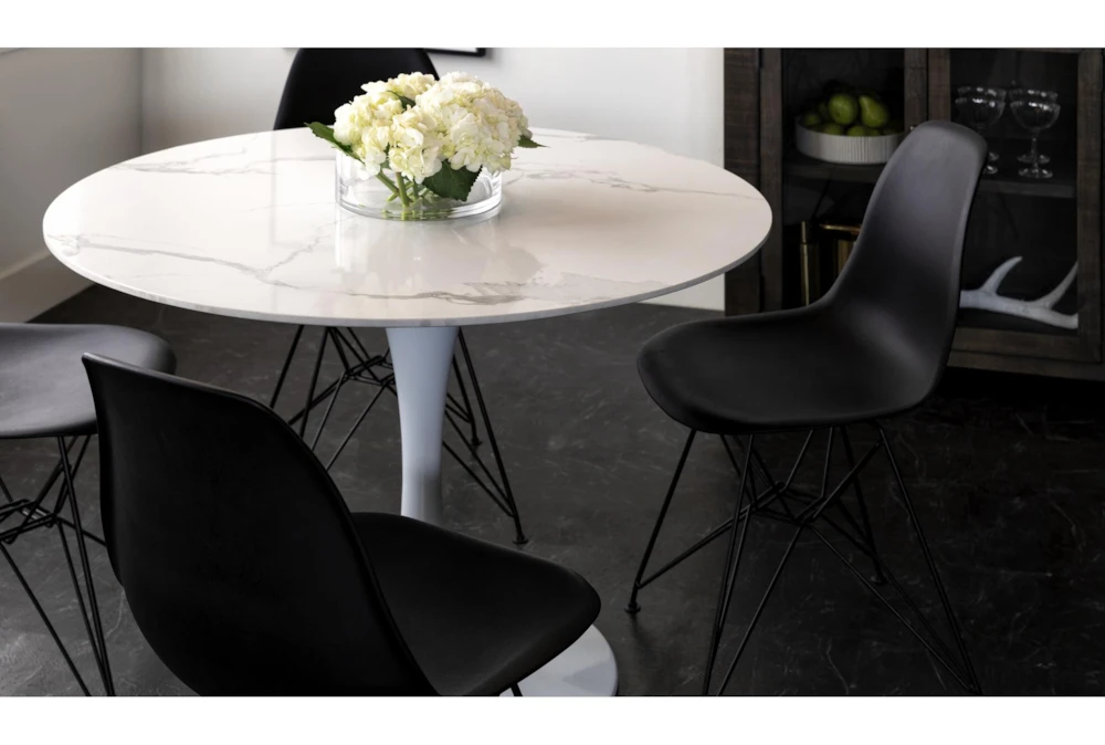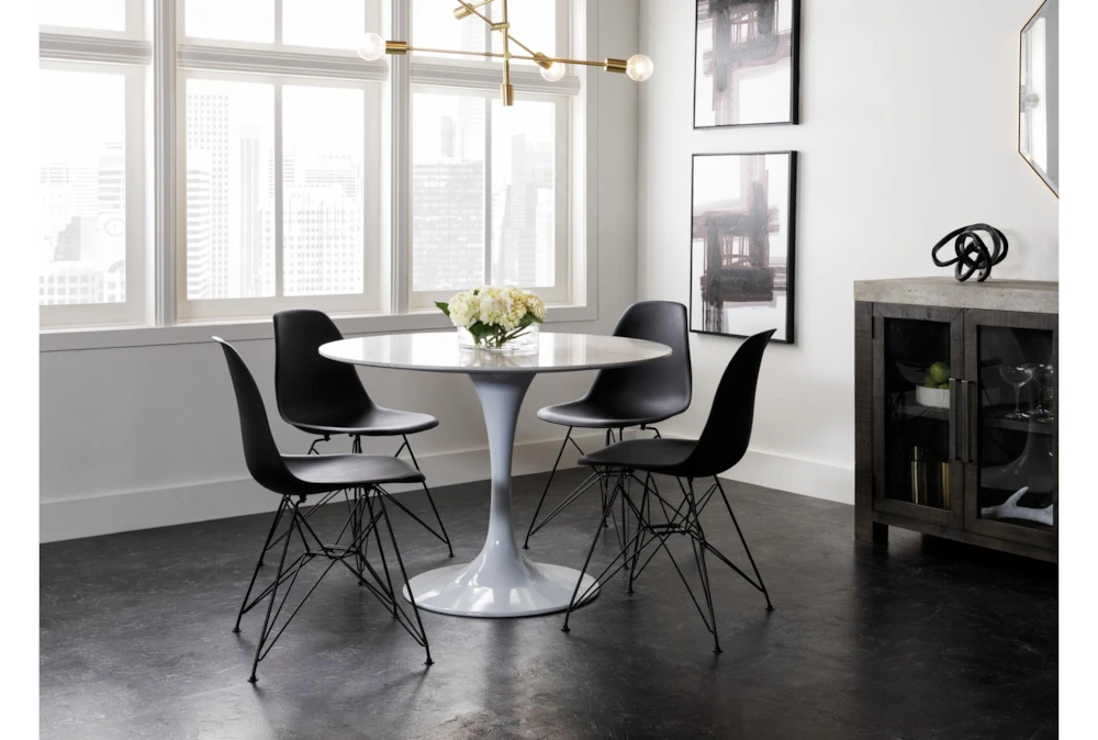The molded plastic chair is ubiquitous for two very important reasons: it’s exceptionally supportive and undeniably versatile. Designed with curves that comfortably contour to your body, our version features a smooth vinyl seat that perches on a striking steel base.