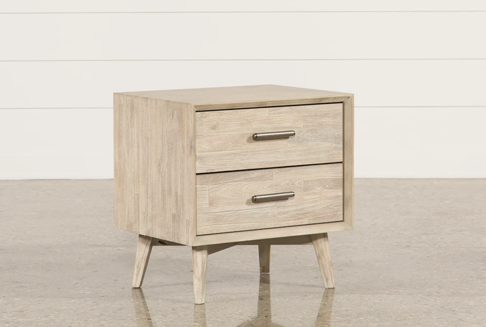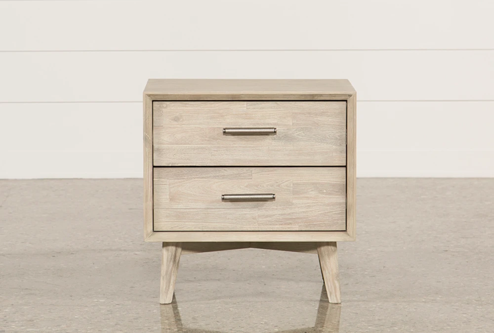 A little mid-century flair can go a long way, especially on a design this sturdy and stylish. The perfect piece to complete your hip retro retreat, our Allen nightstand is crafted from solid wood and outfitted with plenty of crowd-pleasing elements – from angled, tapered legs and crisp edges, to a light sandblast finish. Understated hardware provides the perfect finishing touch, adding streamlined utility to this timeless beauty.