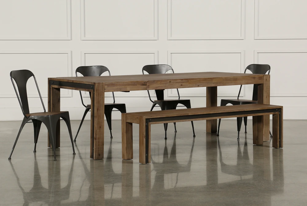 The marriage of metal and wood has never been more solid. Characterized by an updated industrial look, our Amos dining collection includes a unique side extension table and bench crafted of acacia and veneer, plus vintage bistro-style chairs that feature contrasting frames and seats. Streamlined yet distinctive, these designs will redefine your mealtime.