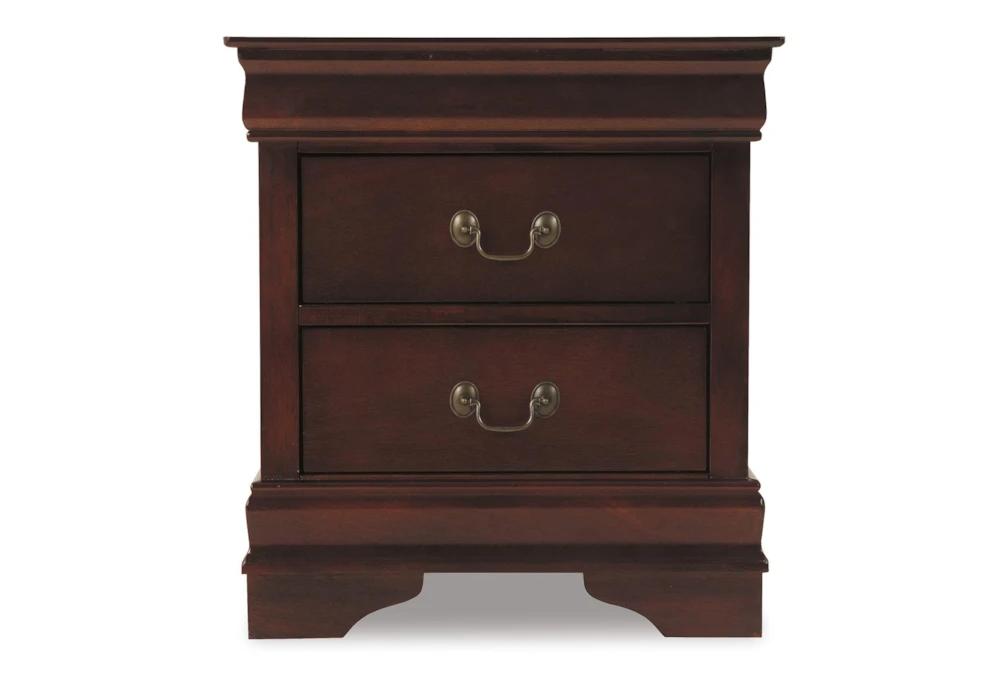The Andor Cherry 2 Drawer Nightstand is a traditional style piece and features two drawers for ample storage in the bedroom, made with acacia veneers, acacia solids, and engineered wood with antique bronze tone hardware. Assembly is required and it comes in a rich cherry color.