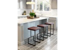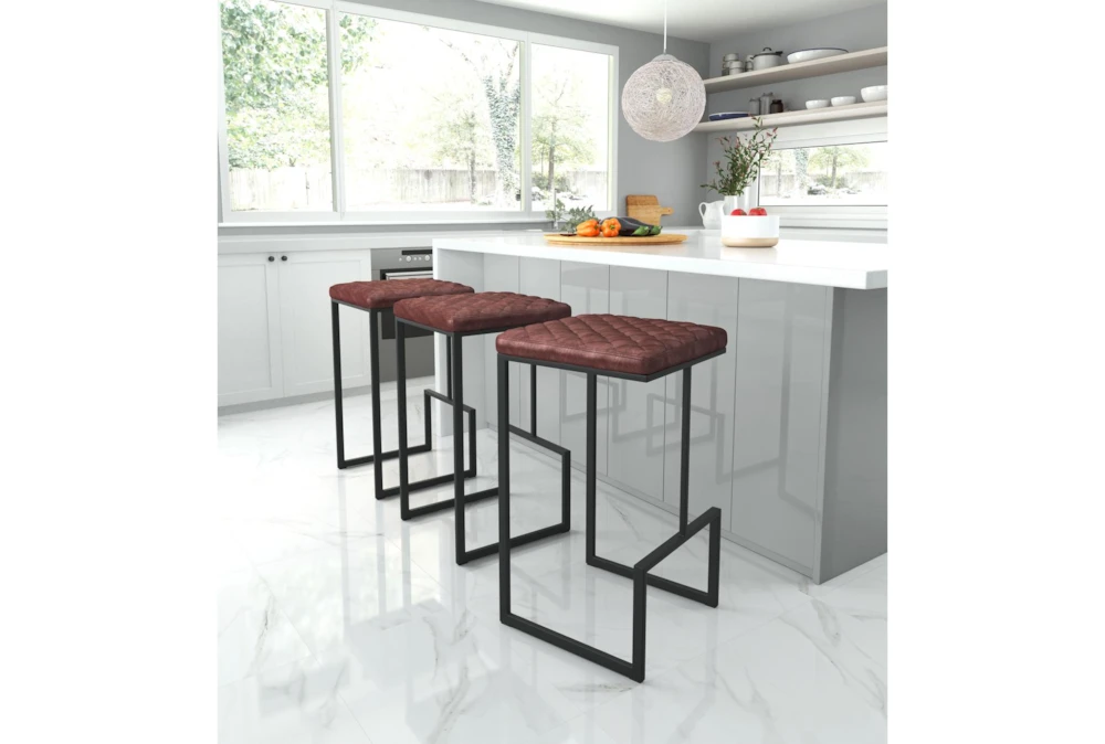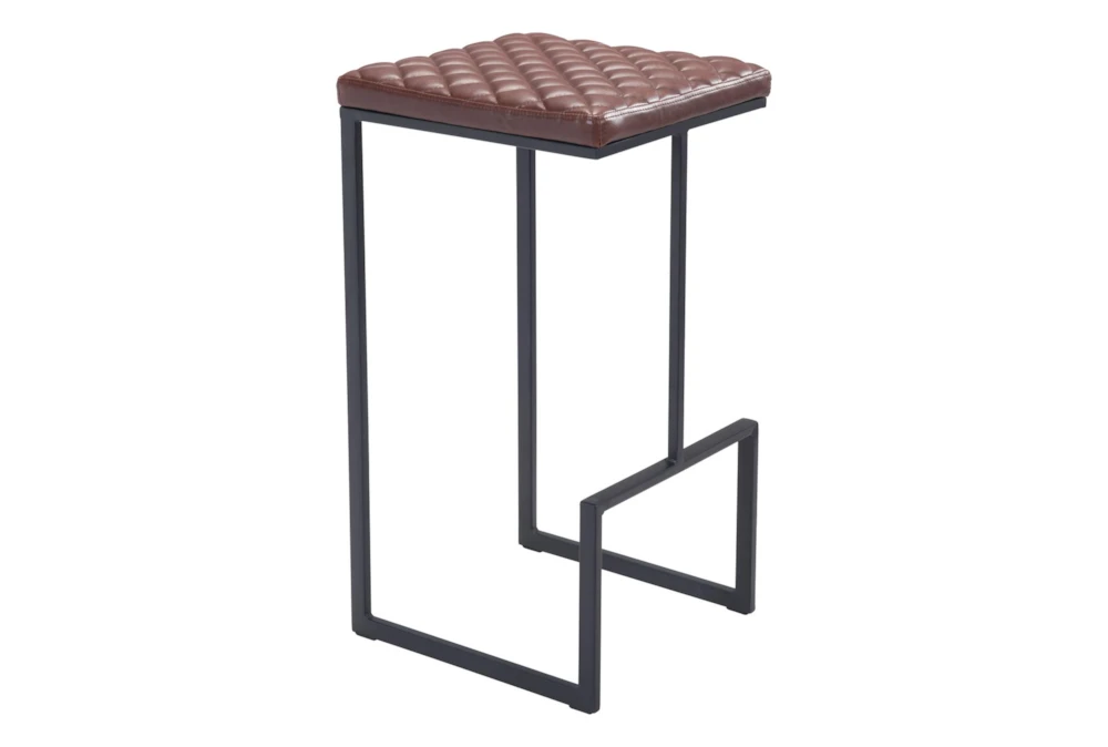 The Atom Brown 30″ Bar Stool is a modern style, backless bar stool made of polyurethane and metal with a quilted cushion. This assembly-required stool is perfect for small spaces and features a powder-coated steel frame, foam padding, and a 100% polyurethane leatherette seat.