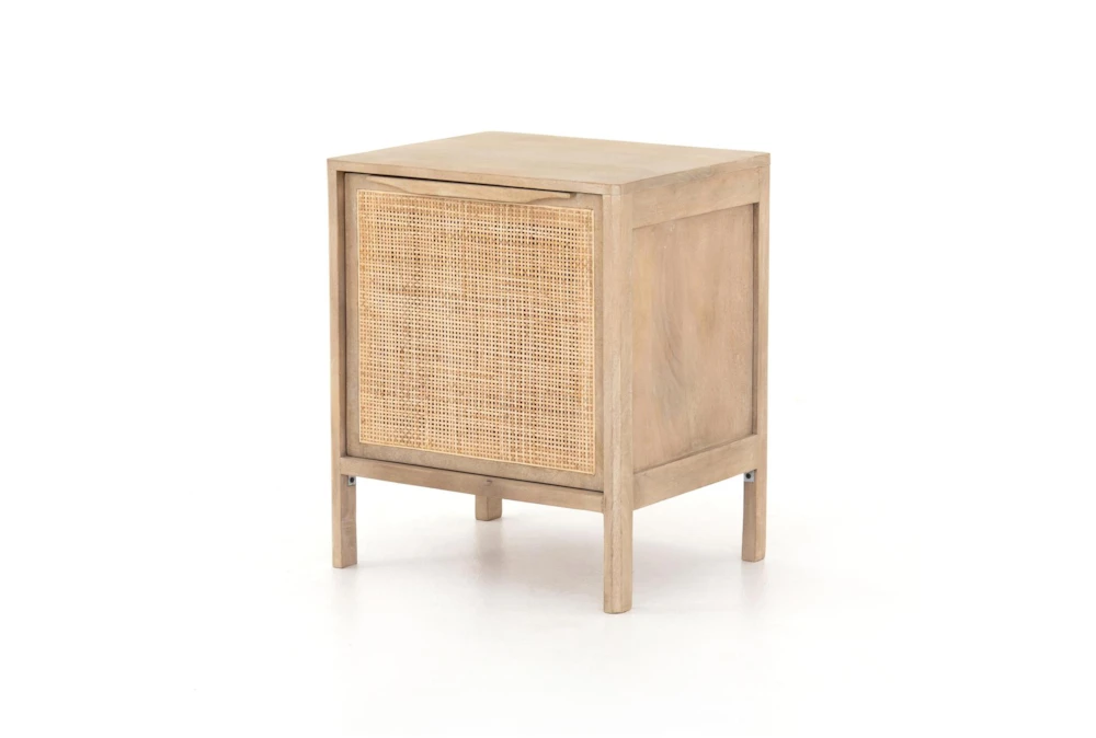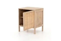 The Aussie Natural Right Opening 24″ Cane Nightstand blends modern style with natural materials, featuring a solid mango wood frame and natural cane accents. Perfect for any bedroom, this nightstand adds a touch of organic elegance with its natural mango finish.