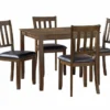 The Barcelona Round Dining Set For 4 is a stylish mid-century modern addition to your dining room, made of natural wood with a 5 piece, armless design with back. Assembly is required and the set is made of oak and rubberwood solids.