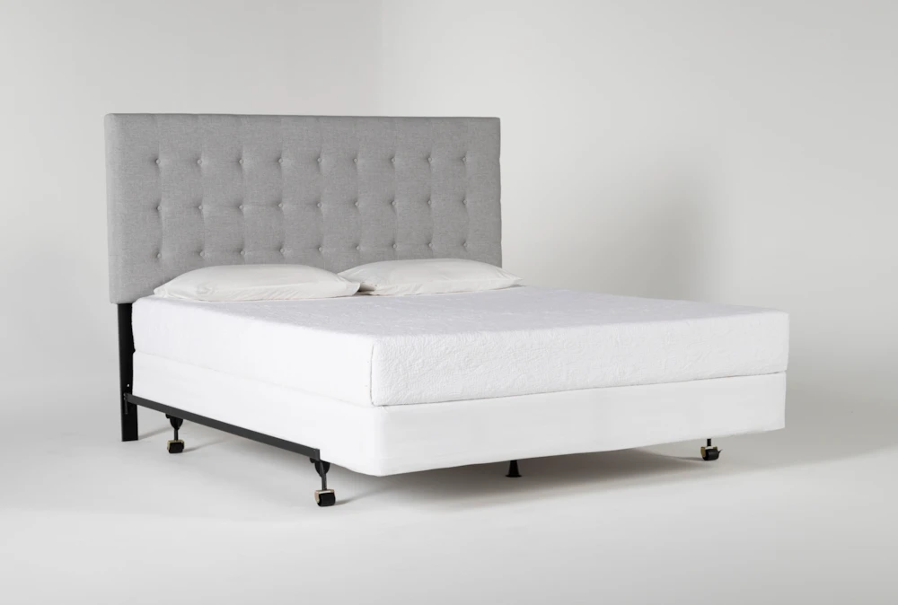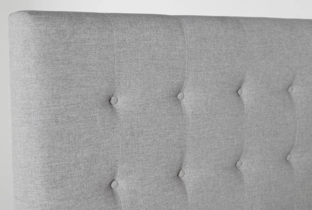 Sleek, streamlined and sophisticated, our Baxton headboard is a handsome addition to your bedroom. Engineered framing material and a powder-coated steel support system ensure the utmost in quality, while self-storing legs that ship within the headboard promise an easy setup. Handcrafted and hand-tufted, the plush, full depth piece boasts geometric grid detail and designer fabric for a tailored, bespoke look. When it comes to height, there are 3 adjustment levels that range from 55.5” to 66.5”, so you can control where it rests at.
