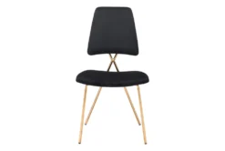 The Black & Gold X Back Frame Dining Chair Set of 2 is a modern set of armless chairs with a sturdy metal frame and sleek black color. Made with a secondary material of wood and upholstered with foam and 100% polyester, these chairs require assembly and have a seating capacity of 1.