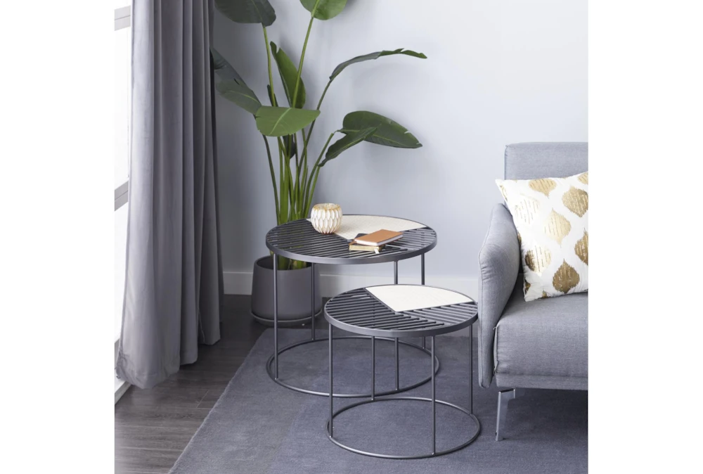 This Black Iron Accent Table Set of 2 is a must-have for any modern home. Made from durable metal, these contemporary style tables are the perfect addition to any living space.