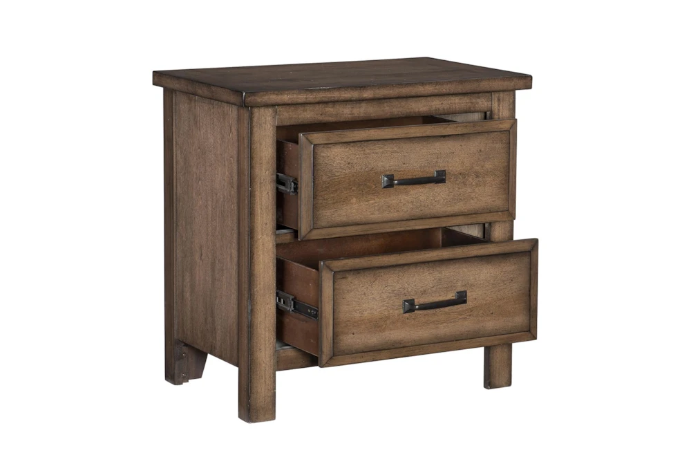 The Blaine Nightstand is a traditional tall nightstand made of wood with storage, drawers, and handles. Its light brown color comes from birch veneer, wood and engineered wood, while the drawers are equipped with dovetail and ball bearing glides for smooth operation.