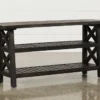 The Blaire 48″ Console Table is a mid-century modern piece made of a rubber wood frame, MDF top, and oak veneer shelf, with a white top and pecan base finish. Assembly is required for this white console table, making it a great addition to any living room.