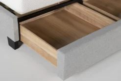 With its grid-style headboard, our Boswell bed will inspire you to think inside the box. Bespoke in grey 100% polyester fabric, the fully upholstered design brings clean lines, classic sophistication and exceptional comfort to your sleep space. In addition to a simple panel version, we offer a storage option, so you can stow away blankets and sheets easily and conveniently.