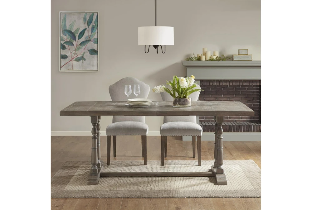 This Bracken Natural/Grey Pedestal Dining Table features a traditional style and is crafted from high-quality wood, making it a stunning centerpiece for any dining room. Its sturdy pedestal base provides ample support, while the natural and grey finish adds a touch of sophistication and elegance.