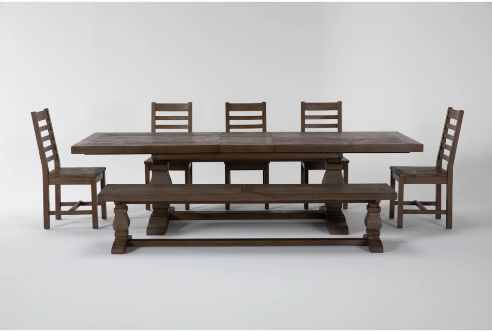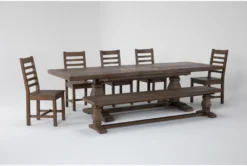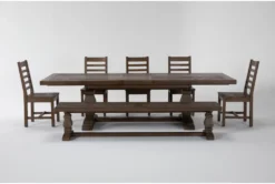 No matter how casual or formal the meal, our Caden dining collection puts on quite the feast. Sustainable, plantation-grown reclaimed pine breathes life and natural beauty into these handcrafted designs, which feature carved details and planked construction. They also boast a hand-distressed desert finish that highlights the wood’s authentic grain, color and texture variations. We’ve paired it with the Biltmore chair for casual elegance.