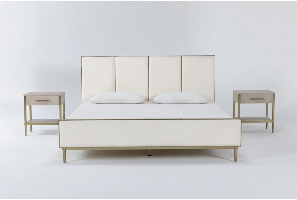 Transform your sanctuary space into a destination for style and relaxation with our Camila bedroom collection. With its abundance of elegant elements, you can create a chic retreat that looks and feels like a luxurious escape. Brass plated details and a velvet upholstered bed with plush paneling bring on the glam, while a cream finish offers a tranquil, trend-forward treat.