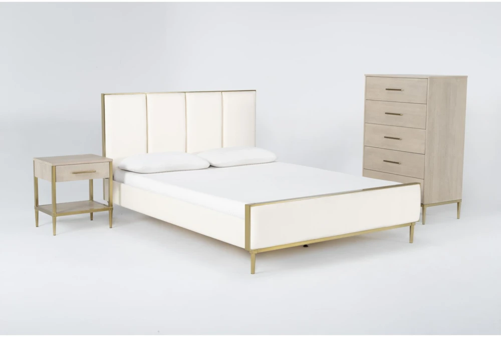 Transform your sanctuary space into a destination for style and relaxation with our Camila bedroom collection. With its abundance of elegant elements, you can create a chic retreat that looks and feels like a luxurious escape. Brass plated details and a velvet upholstered bed with plush paneling bring on the glam, while a cream finish offers a tranquil, trend-forward treat.