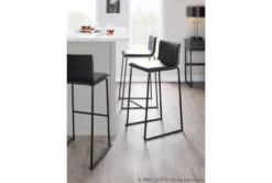 Bring a touch of modern sophistication to your dining room with the Cara Black Steel and Black Faux Leather Bar Stool Set of 2. This armless set is crafted from high-quality faux leather, and boasts a sleek black steel frame that adds a touch of elegance to any space.