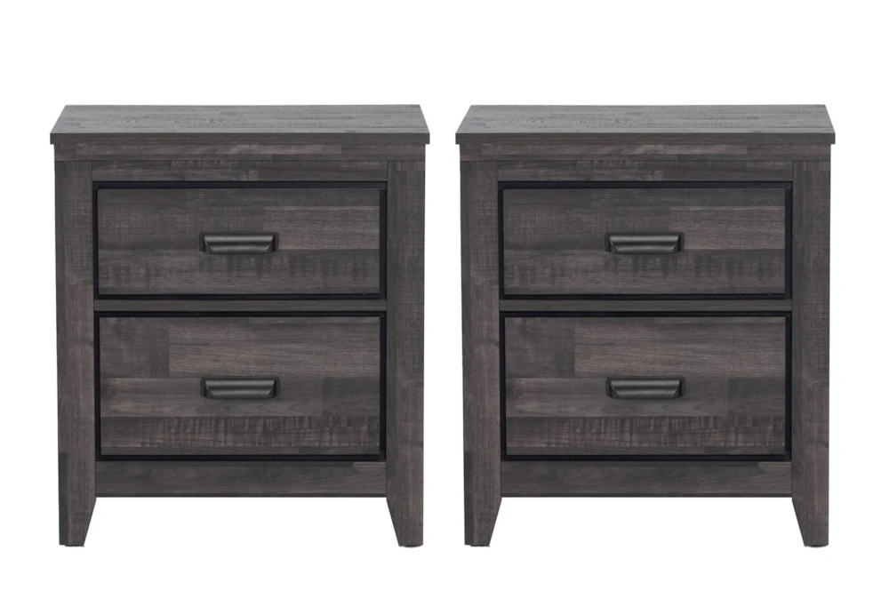 The Carver 2 Drawer Nightstand Set of 2 is a farmhouse-style bedroom furniture made of wood and comes in a rustic brown color. It features storage and drawers, and is crafted with rubberwood and MDF with paper material.