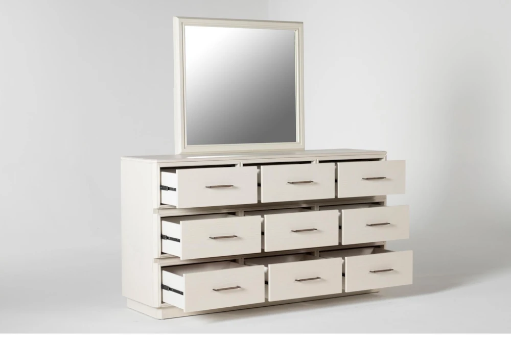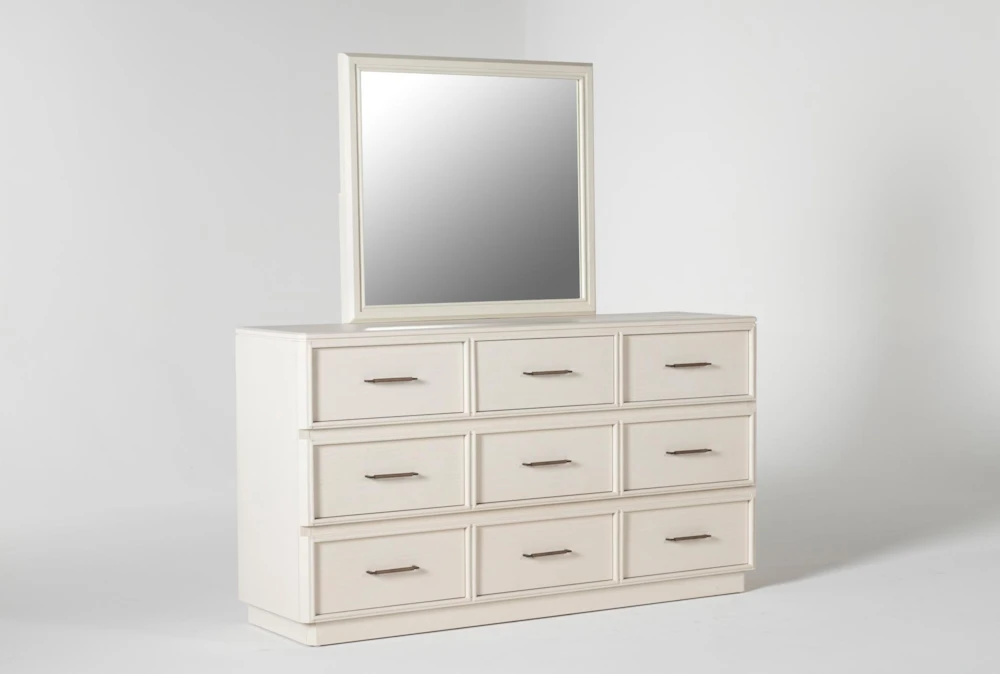 Inspired by the classic French aesthetic, Nate and Jeremiah’s Centre dresser/mirror brings easy elegance to your space. Thoughtful details, mixed materials and contrasting light and dark tones are subtle yet striking features that distinguish the design. From the unique texture of the wood, to the chalky white finish, to the angular edges, each element was carefully considered and beautifully incorporated. In addition to its vintage Parisian style, the piece boasts rich functionality, including its extensive storage.