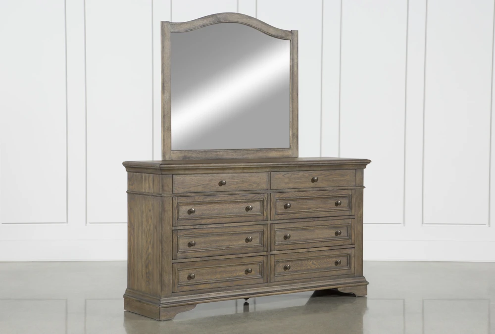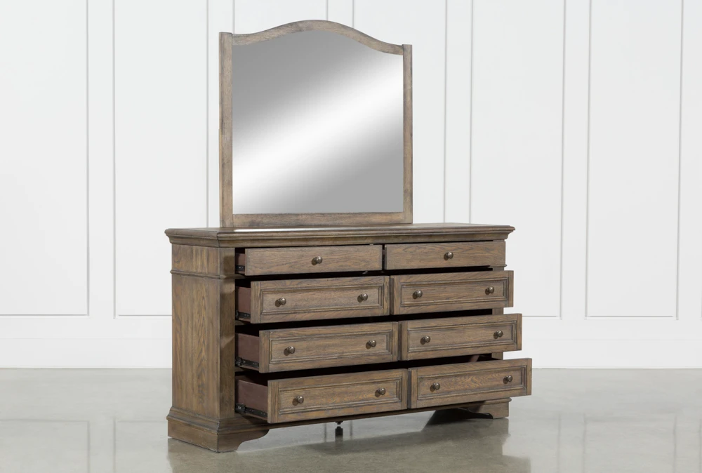 Elegantly detailed and skillfully constructed, our Chapman dresser/mirror will bring traditional beauty to your space. Solid hardwood and white oak veneers combine to create this stunning, sturdy design, which features felt-lined drawers, cedar-lined bottom drawers, ball-bearing glides and English dovetail joinery.