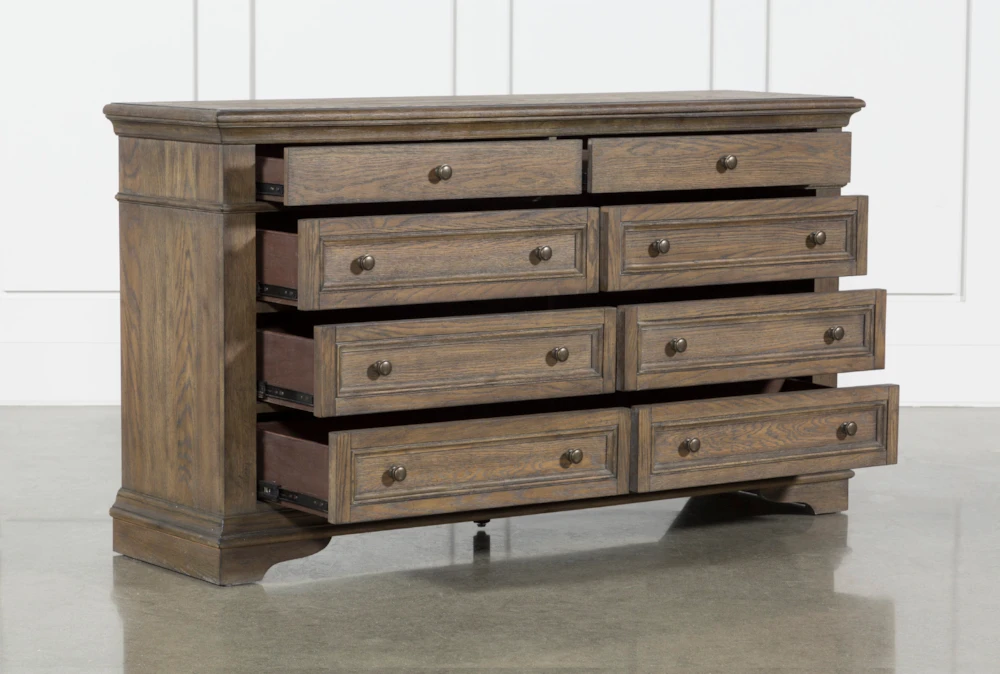 Elegantly detailed and skillfully constructed, our Chapman dresser will bring traditional beauty to your space. Solid hardwood and white oak veneers combine to create this stunning, sturdy design, which features felt-lined drawers, cedar-lined bottom drawers, ball-bearing glides and English dovetail joinery.