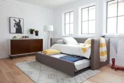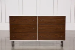 Thanks to modern design elements like a sleek metal base and striking two-tone finish our Clark dresser brings stylish vibes to your space. A high-sheen solid poplar wood frame encases walnut veneer drawers, which are crafted to provide quality, sturdy storage. Perfect for mixing and matching with other bedroom furniture, this piece allows you to create a truly custom retreat.