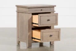 Transform your bedroom into a rustic refuge with our Coleman nightstand. Crafted with clean lines and linear moldings, this piece highlights the simple, natural beauty of solid pine and veneers. To enhance the wood’s textural details, the design features a hand-applied finish with subtle distressing. In addition to quality dado joinery, the drawers are constructed with full-extension side guides and finished interiors, plus they’re appointed with burnished brass hardware. For exceptional ease and convenience, it also boasts a pullout tray and USB port.