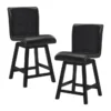 The Collin Backless Adjustable Bar Stool in Black and Chrome is a set of 2 contemporary stools made of wood and metal, featuring black leatherette upholstery and an adjustable height of 28-33 inches for versatile use in small dining spaces.