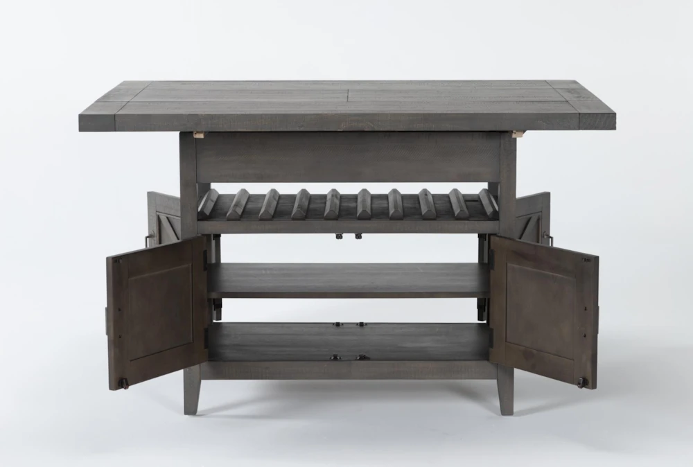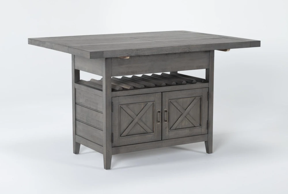 Take everyday entertaining to new heights with our Concord counter dining table. Crafted with hardwood, solid pine and pine veneers, the piece is decked in a cadet grey finish that adds rustic warmth and character. It features a 16” self-storing butterfly leaf and storage cabinet that is topped by a convenient wine bottle rack.