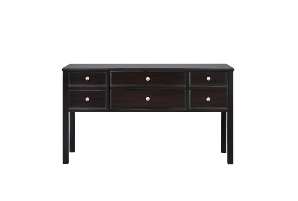 The Connor 54″ Console Table is a traditional style composite table with storage, perfect for small living rooms. Assembly is required and the table features an ebony and rubberwood finish, with legs composed of acacia veneer, poplar wood, MDF, PB, and PW.