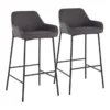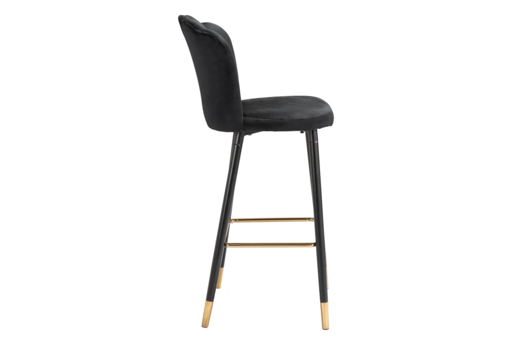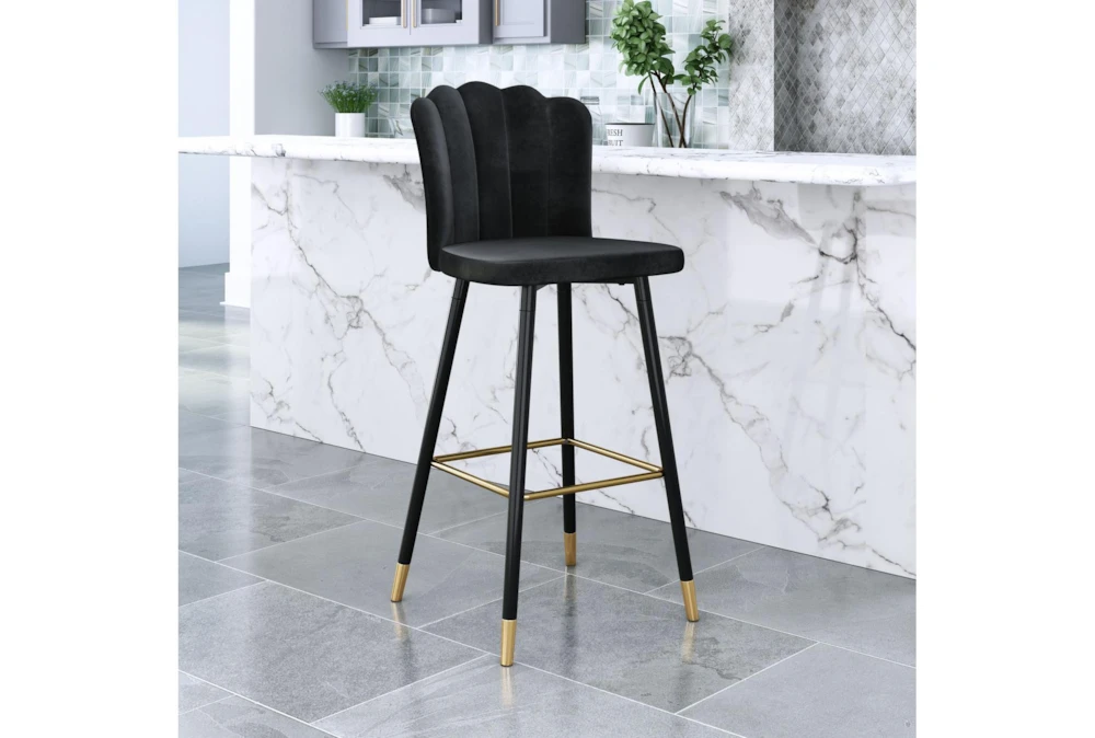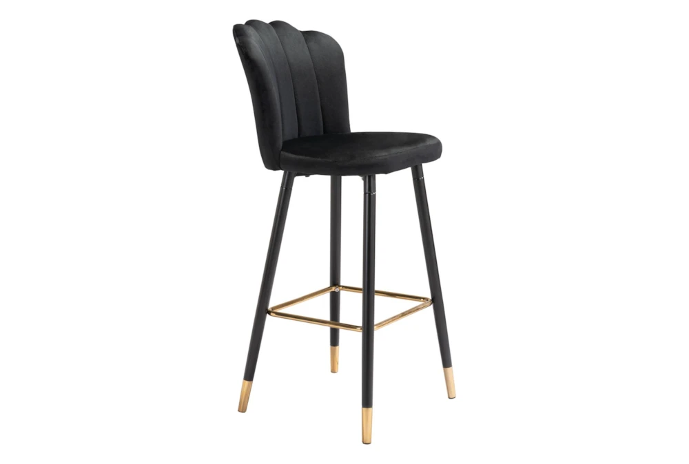 The Contemporary Black Bar Stool is an armless bar stool with a back, made of matte black and gold steel with a secondary material of wood, plywood, foam, and 100% polyester. This sleek and modern stool requires assembly and can seat one person in any dining room.