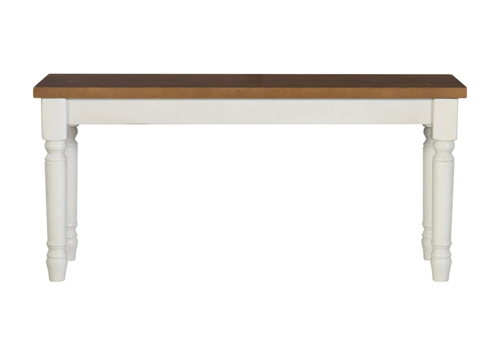 The Davis Brown Dining Bench is a traditional style piece made of wood and metal, featuring a narrow armless and backless design that requires assembly. This brown bench measures 42 inches in length and is constructed with 42% MDF, 53% rubberwood, and 5% hardware.