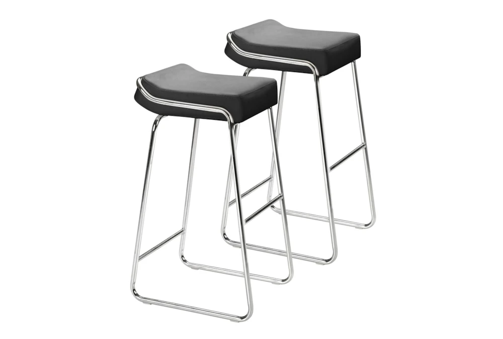 The Edge Black Backless Barstool Set of 2 is a modern style set made of metal, with a black color and armless design. Assembly is required, and it has a seating capacity of 1.