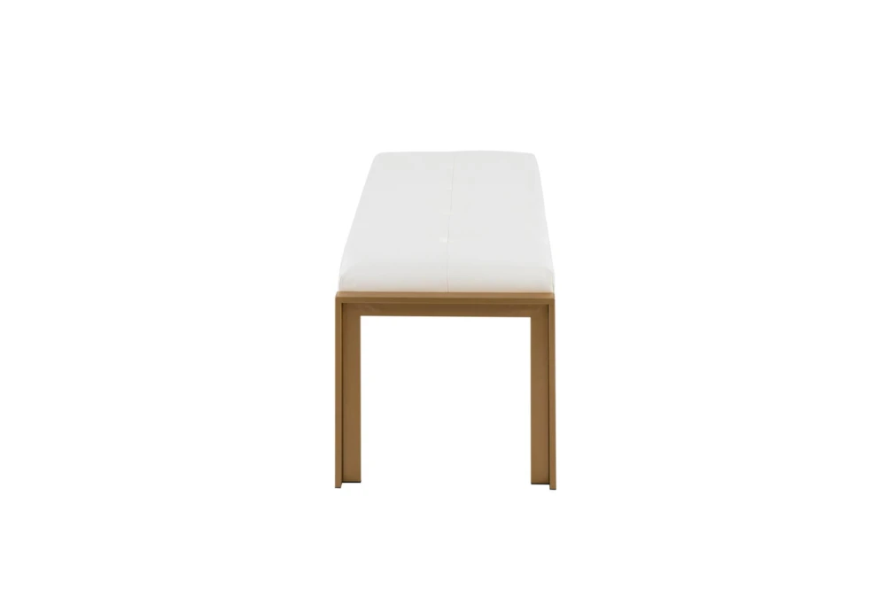 This modern Fede Gold Metal and White Faux Leather Bench is the perfect addition to any stylish home. Its backless design and comfortable cushion make it both practical and beautiful.