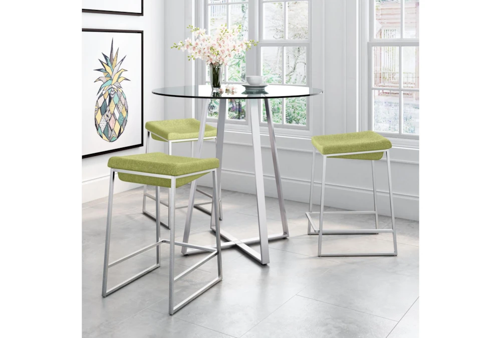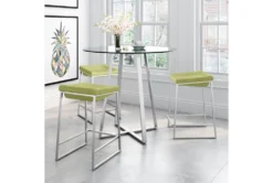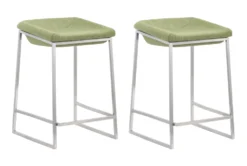 The Green Modern Backless Counter Stool Set of 2 is a stylish addition to any dining room. With its tall, armless and backless design, this modern set is made of durable metal that adds a touch of sophistication to your space.