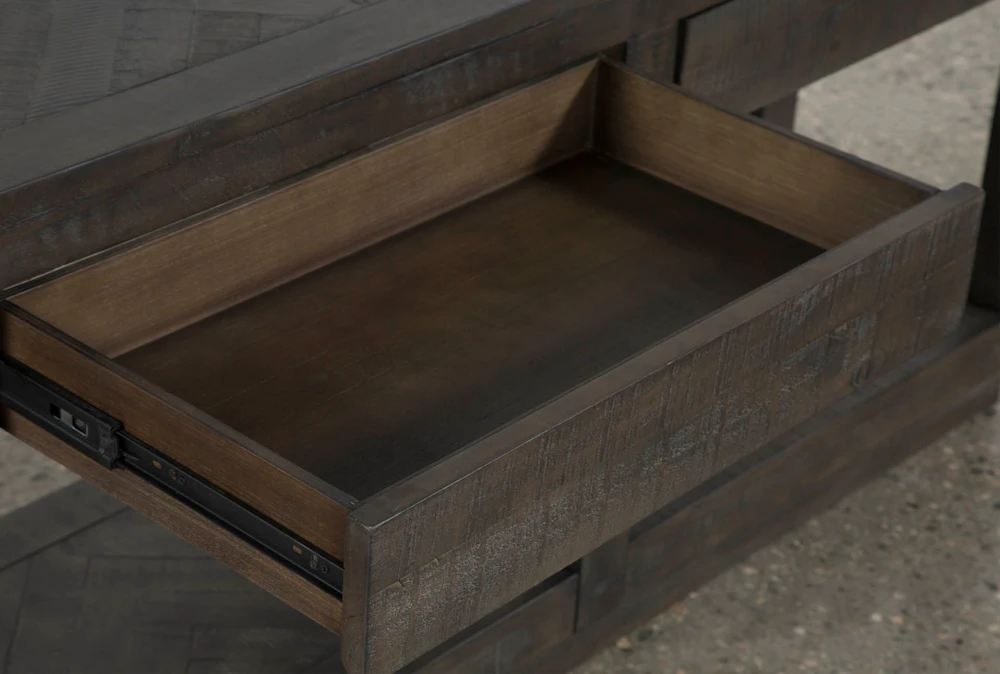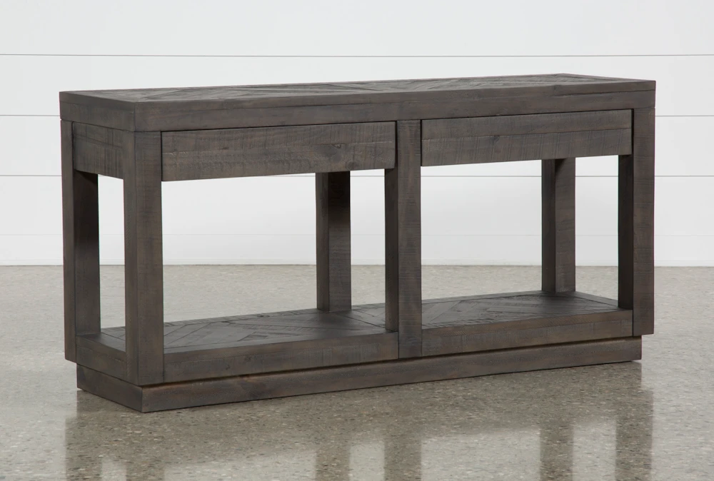 Instantly uplift your space with our Harrison Sofa Table. This unique piece makes a great accent behind your sofa or entryway to complete your rustic modern theme. A rich, smoke brown finish infused with a heavy glaze, hand rubbing and matte lacquer bring out the wood’s natural grain and texture. Pull-through drawers and a lower shelf keep your things tidy and easy to reach.