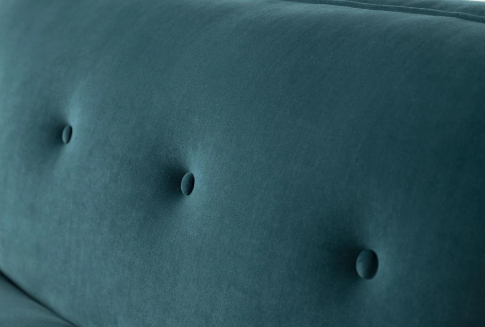 The perfect lounge to place in a small space, our Holden settee may be modest in size and price, but not in style. Seat three comfortably during parties, then reserve it for yourself on lazy afternoons. This tailored tight back frame features button tufting, welted seams and a mocha-finished exposed wood base. You can customize the fabric at no extra cost through our Special Order program, and receive your piece in just a few weeks.