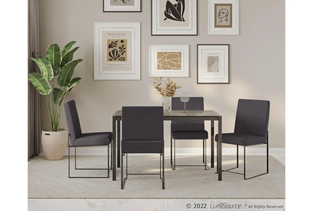 This Ian Charcoal Fabric Black Steel Dining Chair Set of 2 adds a touch of modern sophistication to any dining room. With a sleek black steel frame and soft polyester fabric, these chairs are both stylish and comfortable.