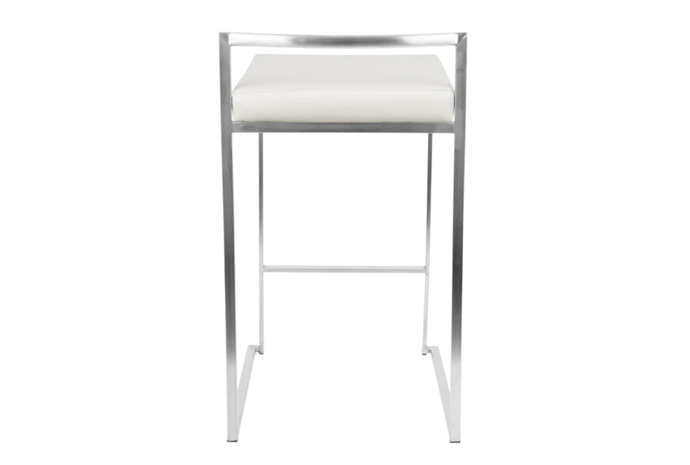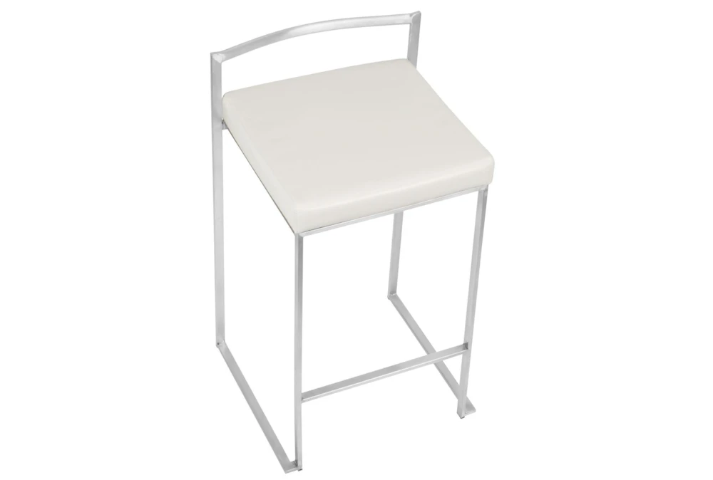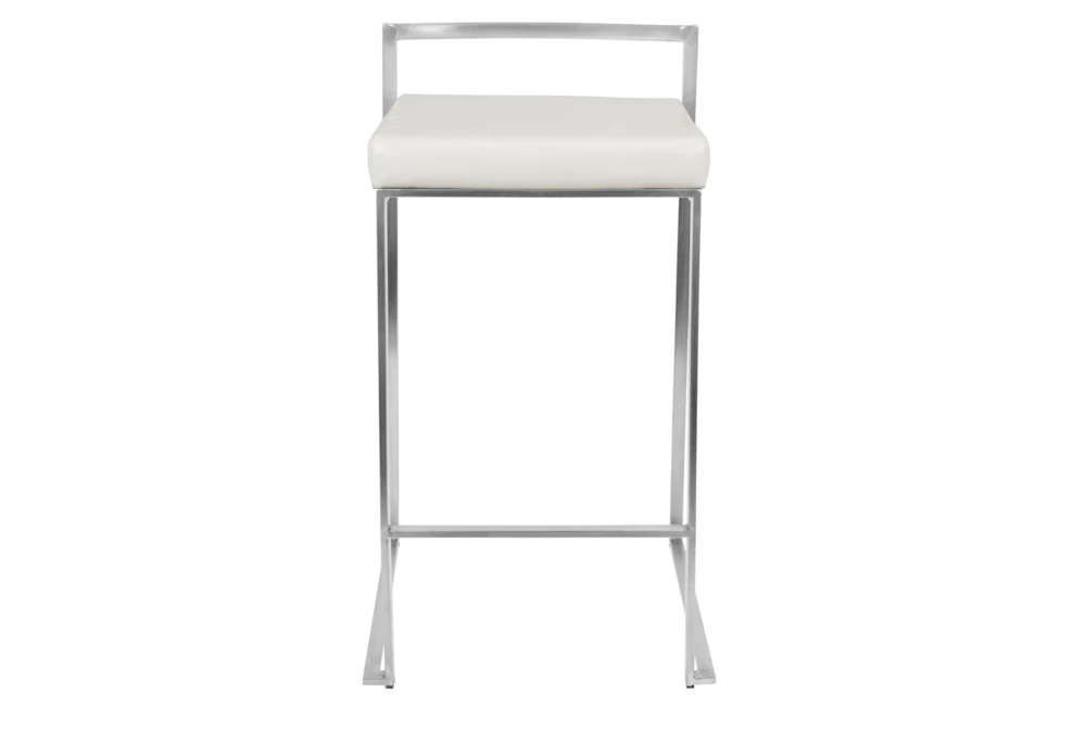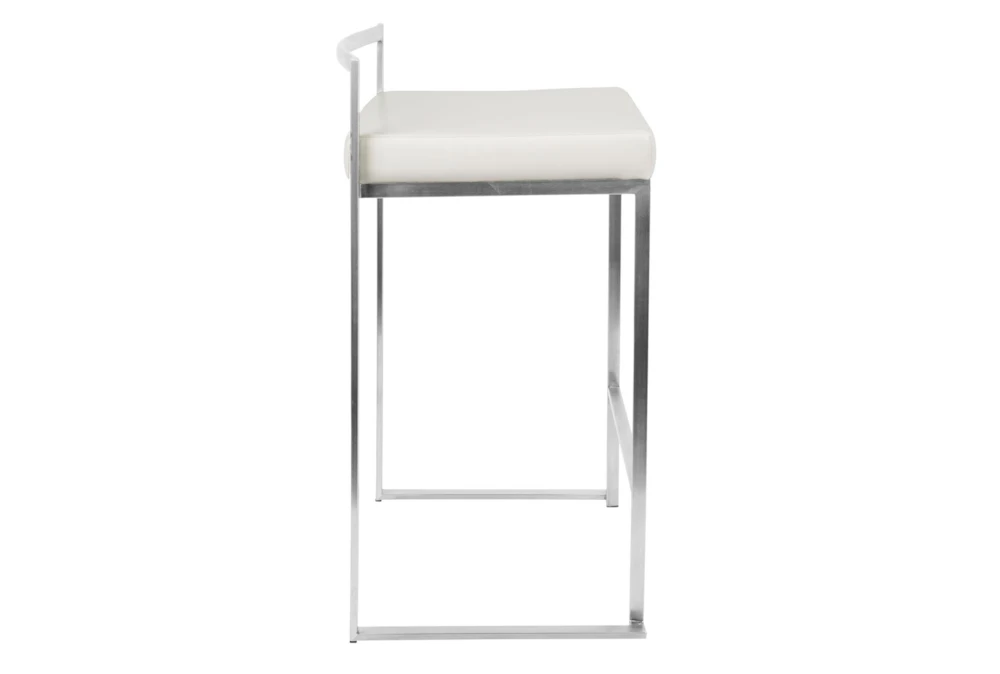 Enhance your dining experience with the Ian White Faux Leather Low Back Stackable Counter Height Set of 2, featuring a modern style and made of durable faux leather. The tall design and stackable feature make it a perfect addition to any dining room, providing both comfort and convenience.