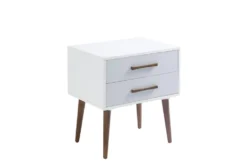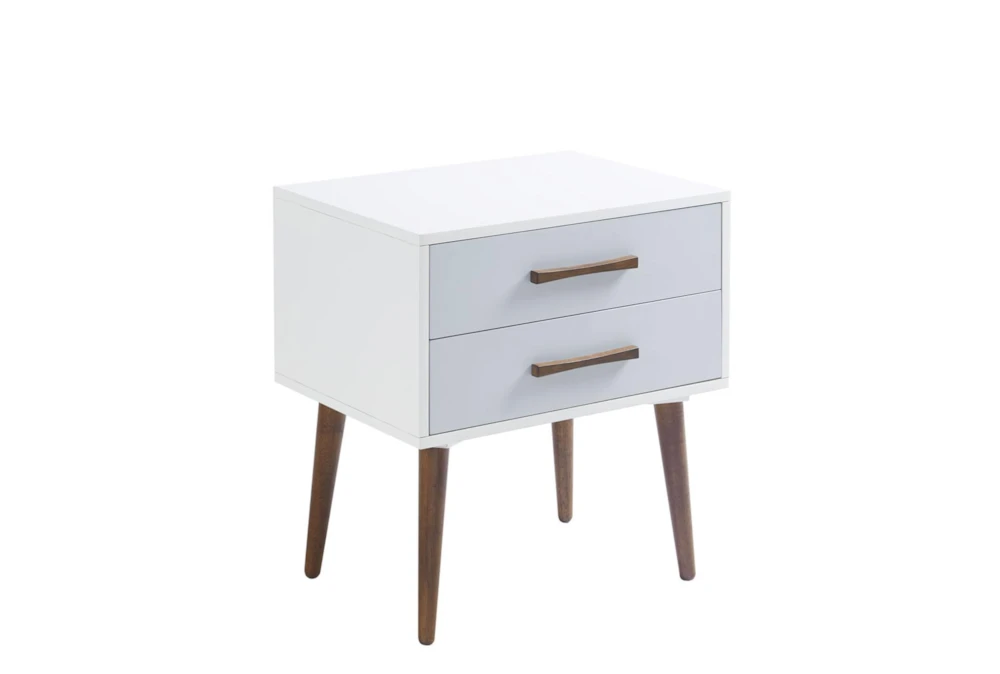 - Featuring two spacious drawers with elegant handles, this nightstand provides plenty of storage for all your bedside essentials.