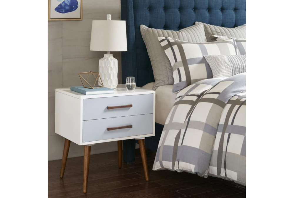 This James White 2-Drawer Nightstand is a tasteful and contemporary addition to any bedroom. With its tall stature and ample storage space, this nightstand is both functional and stylish.