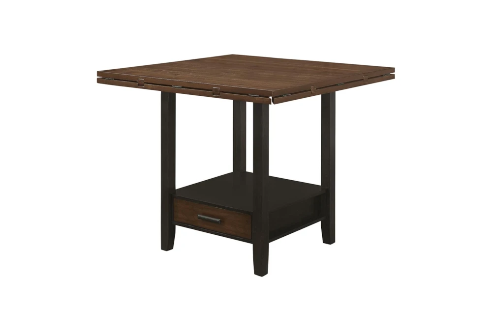 The Jarvis Round Drop Leaf Counter Table is a stylish and functional addition to any dining room. Featuring storage drawers and shelves, this casual counter height table is made of durable Asian hardwood and comes in a warm cinnamon or espresso finish.