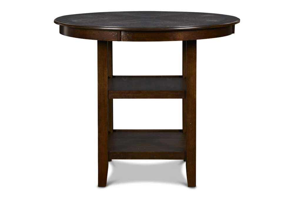 This Joni Cherry Round Counter Set for 4 is the perfect addition to any casual dining room, made with high-quality wood and featuring a tall counter height, armless chairs, and convenient storage shelves. With 5 pieces included, this set offers both style and functionality for your home.