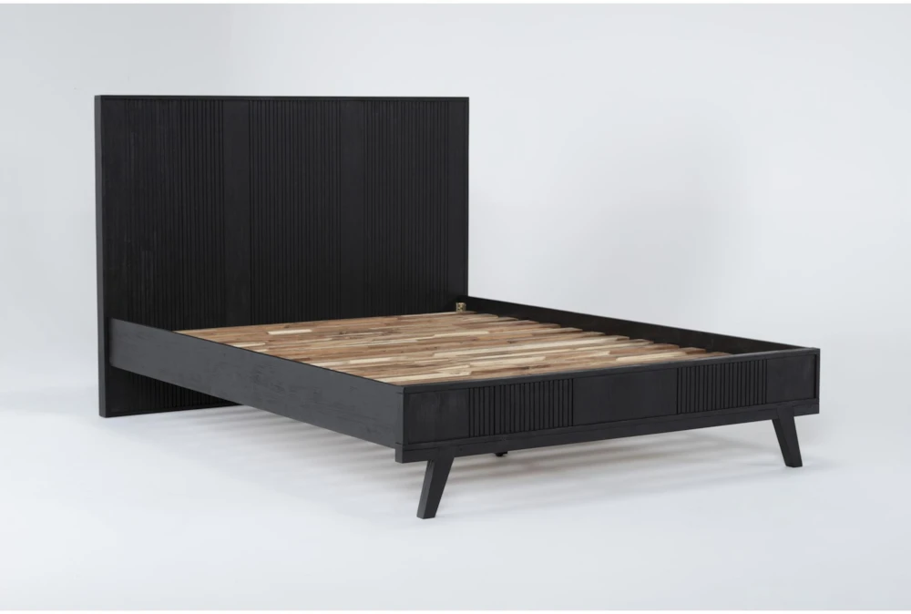 If unique is what you seek, look no further than our distinctive Joren bedroom collection. Defined by its edgy modern style, this set boasts cool, contemporary character highlighted by reeding detail that adds decorative dimension. Mature acacia wood in a black, lightly sand-blasted finish ensures strength and quality, while two bed options β storage and non-storage β allow you to choose whatβs best for your needs. Even the nightstand includes USB ports for added ease and convenience.