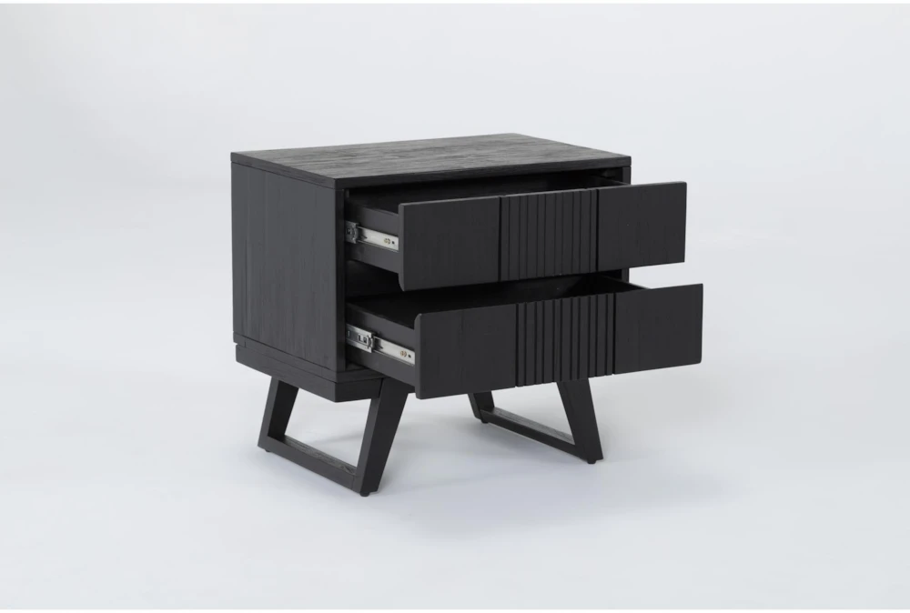 If unique is what you seek, look no further than our distinctive Joren bedroom collection. Defined by its edgy modern style, this set boasts cool, contemporary character highlighted by reeding detail that adds decorative dimension. Mature acacia wood in a black, lightly sand-blasted finish ensures strength and quality, while two bed options β storage and non-storage β allow you to choose whatβs best for your needs. Even the nightstand includes USB ports for added ease and convenience.
