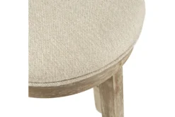 Frame: Rubber wood legs, Upholstered seat, Metal ring footrest; Fabrication: 100% Polyester; Filling: Foam; Wood Finish: Aged Oak; Metal Finish: Bronze