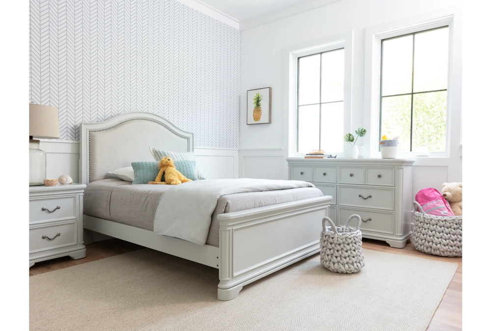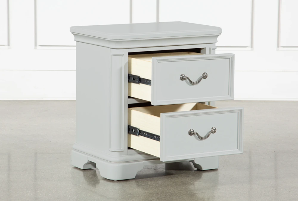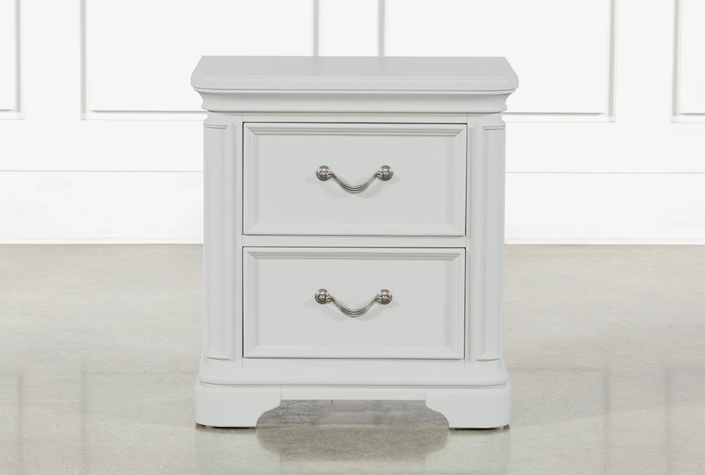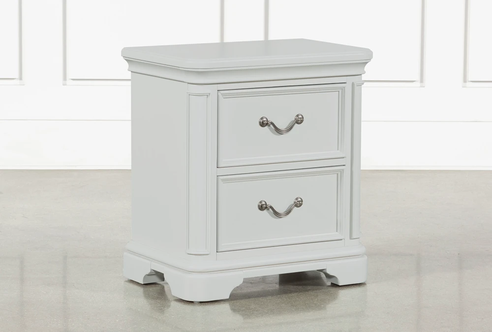 Our traditional yet youthful Julia nightstand will transform your child’s bedroom into a space where they can blossom and evolve. Featuring elegant details, it’s just as suitable for young kids as it is for teens. Constructed for easy bedside storage, this piece is made with a combination of solid poplar wood and veneers, and boasts a durable soft grey lacquer finish. It even includes 2 USB ports for charging up phones and devices.