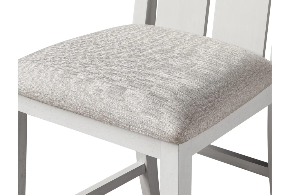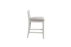 The Kaine Two Tone White Storage Counter Set For 2 is a casual yet stylish addition to any dining room, boasting tall armless chairs with shelves and a 3-piece design made from quality wood. Perfect for those who value both form and function, this set also includes convenient storage options for added utility.