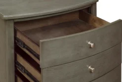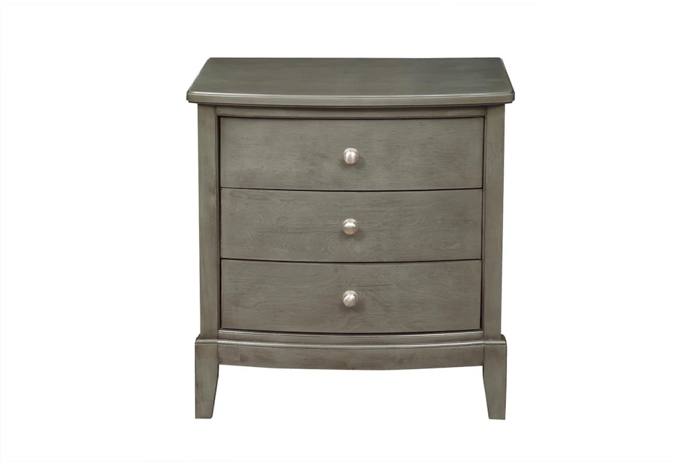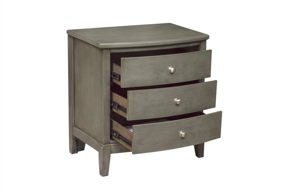 The Kensley Grey Nightstand is a tall and stylish piece of furniture that fits perfectly in any casual bedroom. Made of birch veneer, wood, and engineered wood, this grey nightstand offers ample storage with its dovetail drawers and ball bearing glides.