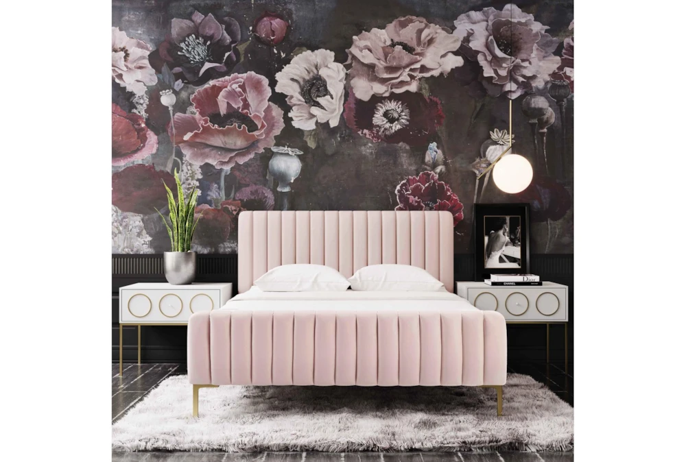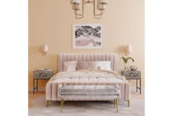 The Lisette Blush Velvet King Bed is a contemporary masterpiece that combines style, comfort, and functionality. With its platform design and built-in storage, this bed is perfect for any modern bedroom.